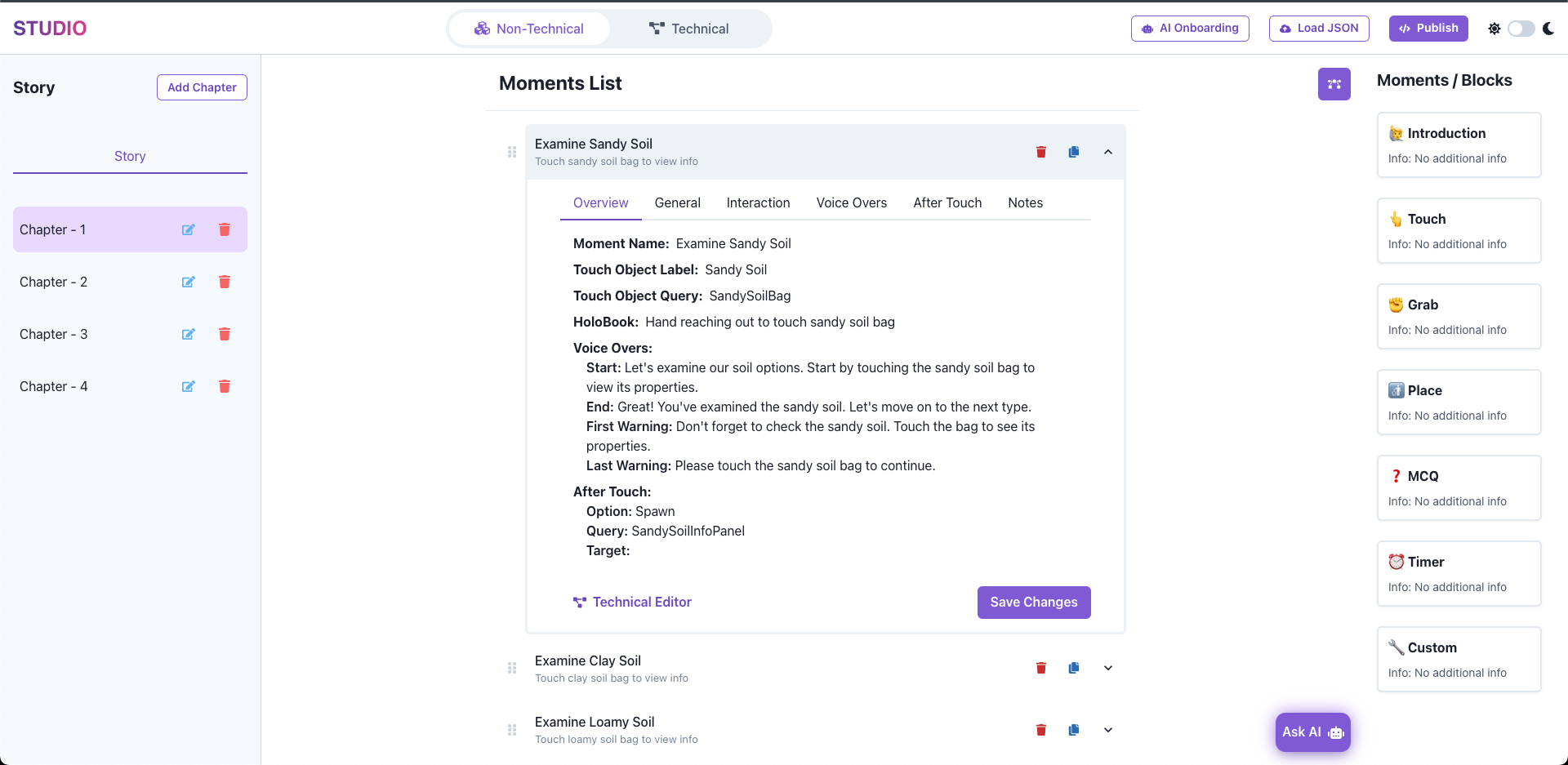 Final Step - Click ‘Proceed To Studio’ & Select a ‘Chapter’ Here you can Edit add moments and Stuff. For now, we have ‘Touch Moment’ working, and the rest are in WIP. But you can still add and try to tinker. Have FUN!
