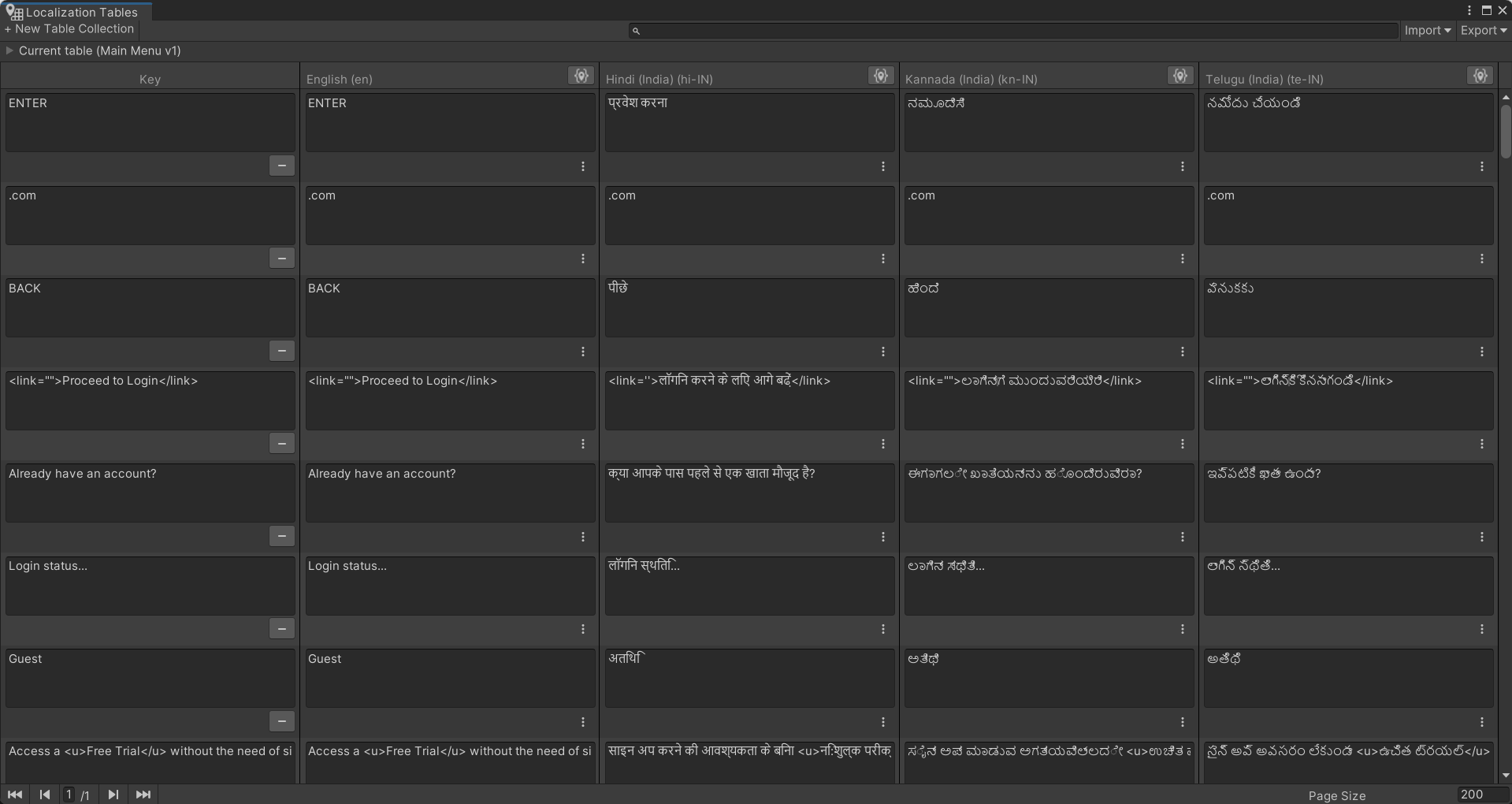 TMP_Textcomponents in the scene, including inactive objects. - Adds their text entries to the String Table, creating new entries if necessary.