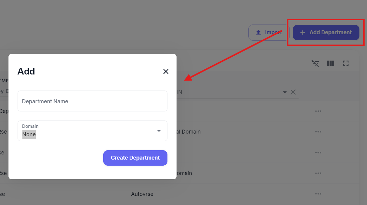 Within pulse, on a fresh instance, we should first create domains and departmentsGo to the organization section on the left tab and select domain