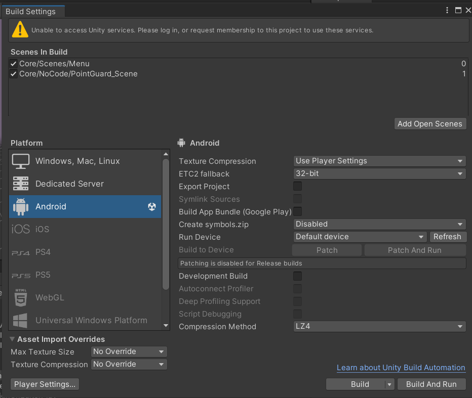 - Click “Sync from Unity Settings” to pull in current Unity settings